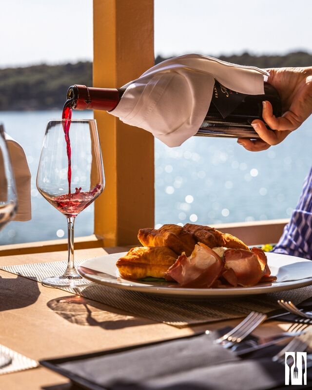 Karta pažljivo razvijena da prati mediteransku kuhinju restorana stoga je naglasak na istarskim vinima koja najbolje sljubljuju svježu ribu, plodove mora, domaća mesna jela i specijalitete s tartufima.